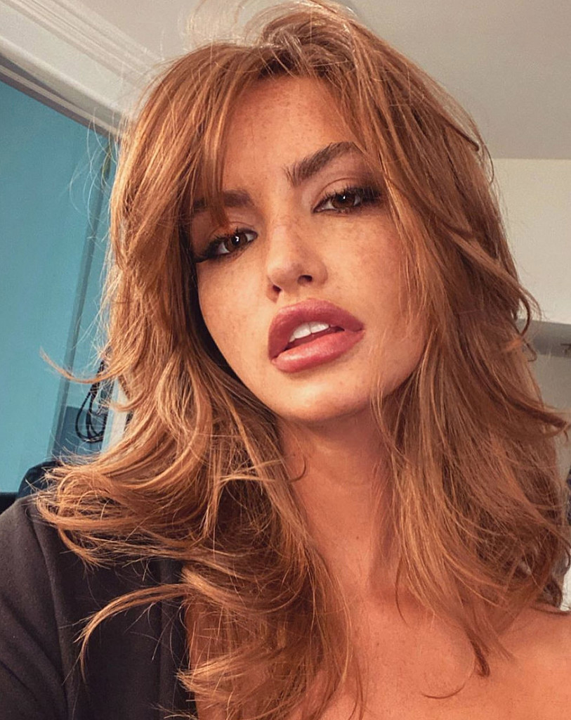 Haley sported a breathtaking golden tan in the photos. Her fiery copper-colored hair was blown away from her face in the first pic. In subsequent images, her tresses framed her face as her bangs brushed the tops of her eyes.
